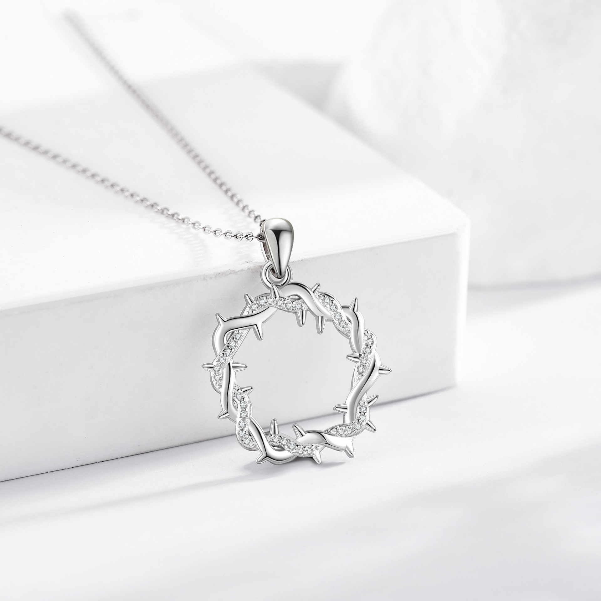 Diamond-Encrusted Thorn Ring Necklace