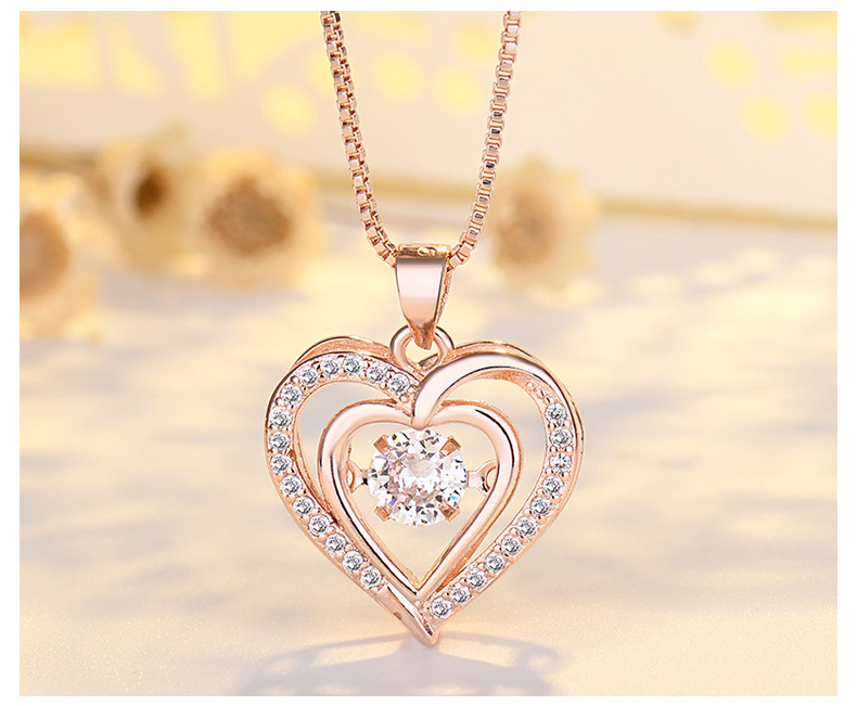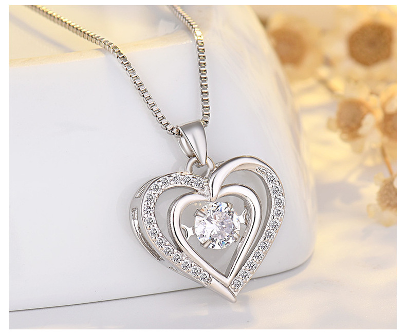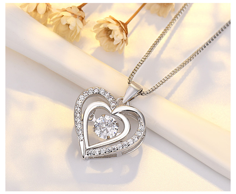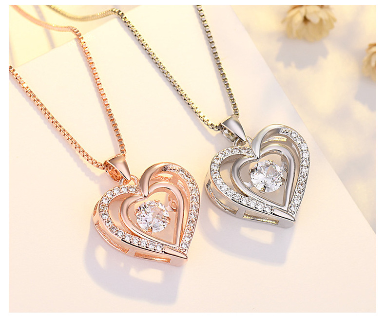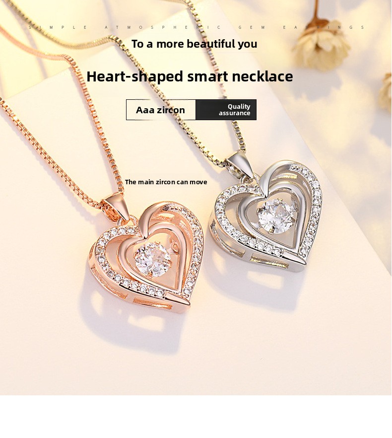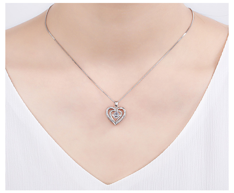 Heart Shaped Pendant Necklace with Moving Charm